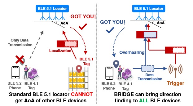 A new paper presents Bridge, a system designed to extend Bluetooth Low Energy direction finding to all Bluetooth devices, including those that do not natively support the feature. Direction finding, introduced in BLE version 5.1, enables angle of arrival estimation using specialised packet structures and antenna arrays, allowing decimetre-level localisation accuracy. However, the majority of existing Bluetooth devices lack support for this capability, and upgrading hardware or firmware at scale is impractical. Bridge addresses this gap by enabling backward compatibility without modifying existing locators or target devices .